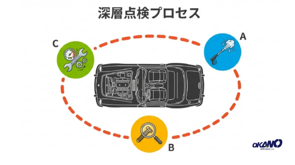 • 日常の清掃では届かない「パネルの裏側」などの防錆処理を、車検のタイミングで確実に行う。